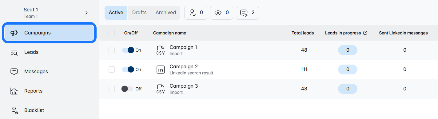 Start by logging into your LinkedIn Support Tool account and heading over to the Campaign Dashboard.