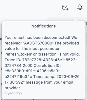 Noticed your email connection keeps dropping? The bell icon will let you know why, offering details about the issue.