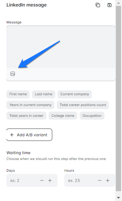 - For email messages, choose where to insert your image or GIF. For LinkedIn messages and InMails, LinkedIn Support Tool will place your personalized images and GIFs at the bottom of the message.