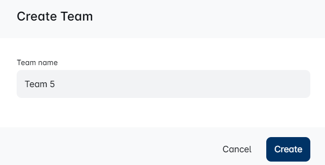 Step 2: Enter a name for your new team and hit 'Create'. Just like that, your new team is ready to roll!🎉