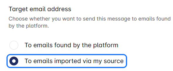 - In the Email step, select "Emails imported by your source" as the option.