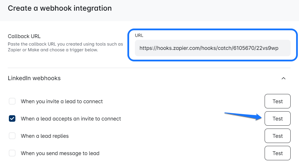 - Return to Zapier and test the trigger to make sure Zapier is receiving the right data from the LinkedIn Support Tool.