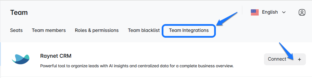 Log in to your LinkedIn Support Tool app and select the team you want to connect to Raynet CRM. Integrations are configured per team, making it easy to keep data separated if you manage multiple clients or workspaces.