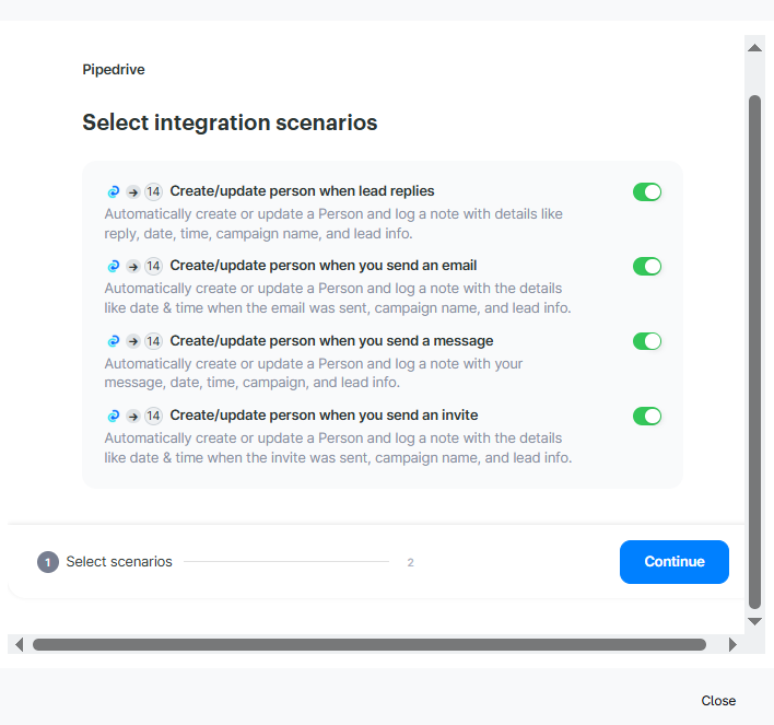Integrating LinkedIn Support Tool with Pipedrive keeps your CRM automatically updated—no manual entry, no double work. Once connected, LinkedIn Support Tool will create or update Persons in Pipedrive based on your outreach activity, helping you track conversations and manage your pipeline effortlessly. ⚙️