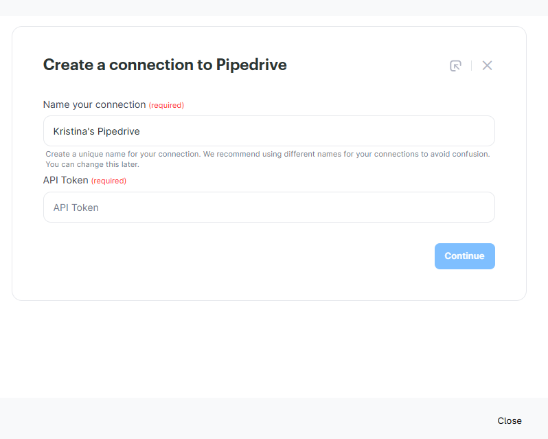 Give your connection a recognizable name, then paste your API token.